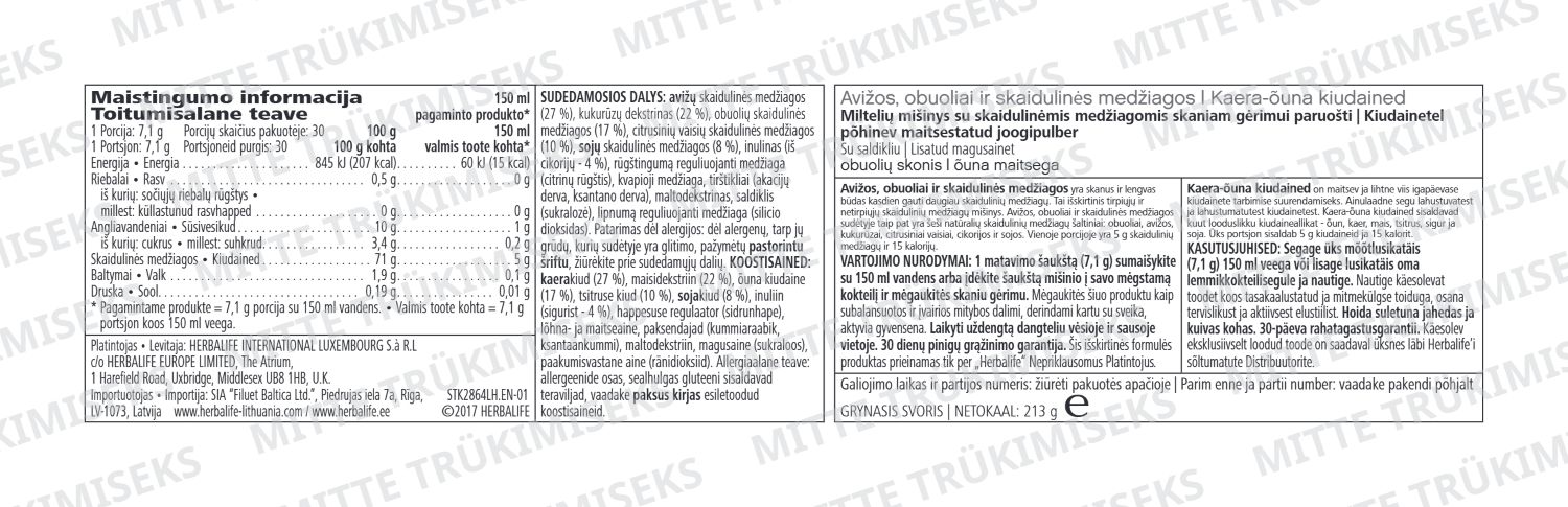 Kaera-õuna kiudained ja Fiber & Herb aitavad toetada soovituslikku ööpäevast kiudainete tarbimise normi – 25 g päevas*.