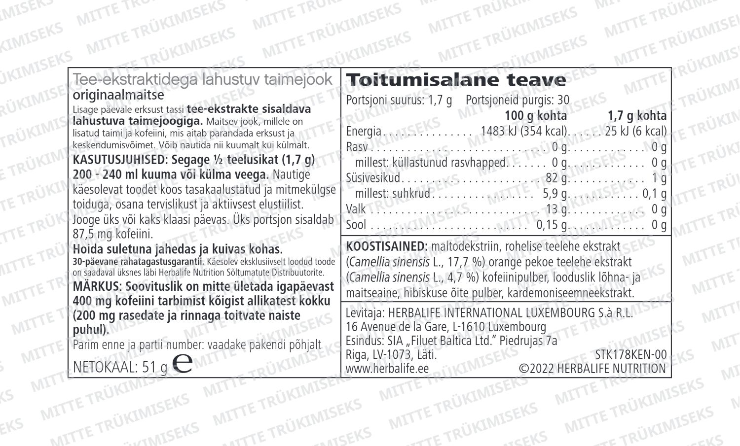 Ostu sooritamiseks, hinna ja muude oluliste tingimuste täpsustamiseks võtke ühendust Herbalife Toitumiskonsultandi - Sõltumatu Partneriga
