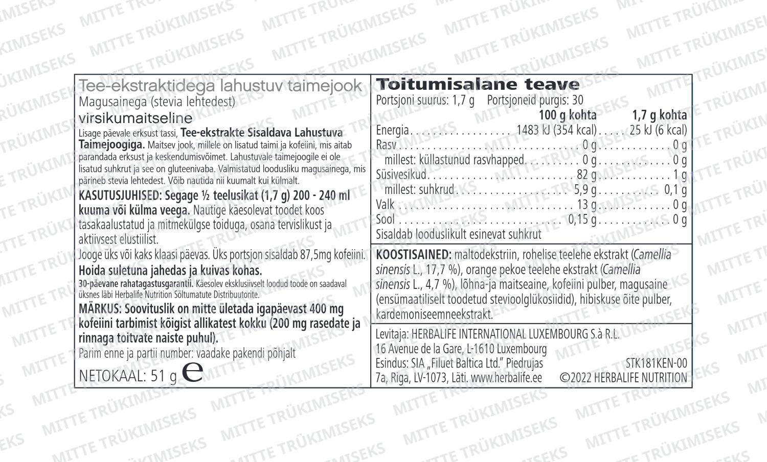 • Rohelise teelehe ekstraktid (Camellia sinensis L., 17,7%)