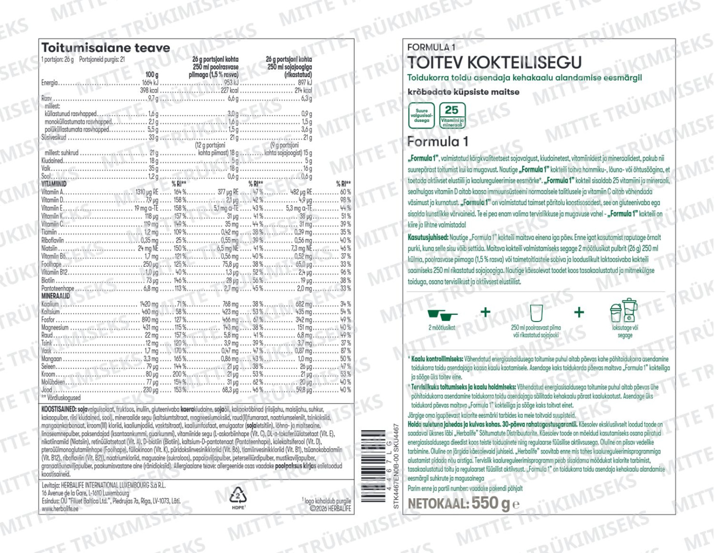 Результаты клинического исследования подтверждают, что программа снижения веса Herbalife Nutrition с использованием протеинового коктейля Формула 1 и протеиновой смеси Формула 3 более эффективна по сравнению со стандартной низкокалорийной диетой*. Видимый результат достигается уже через 2 недели**. Продукция разработана в собственном научном центре Herbalife Nutrition и выпускается на производстве по международным стандартам качества GMP. Без ГМО.